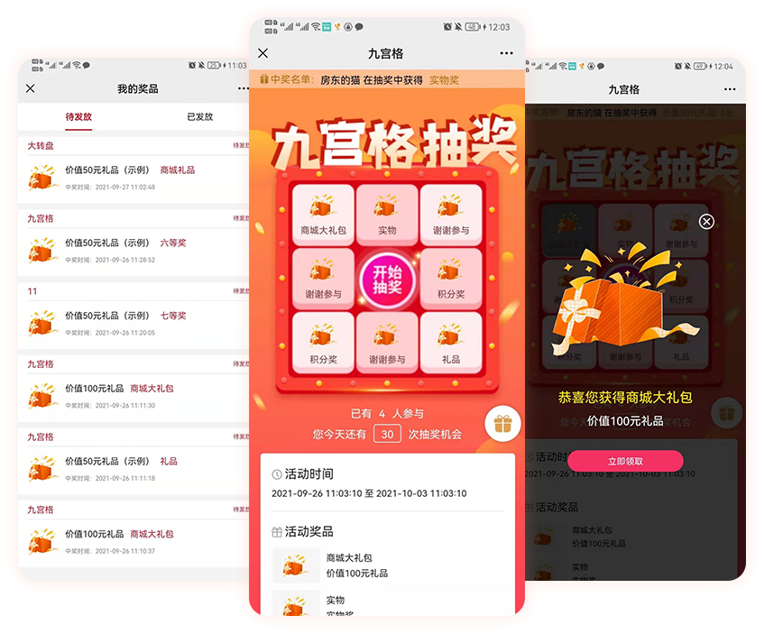 ▶ 支持实物、积分、商城商品、优惠券奖品