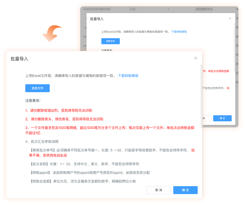 ◆ 门店后台应用页面增加批量打款功能,支持微信官方打款模板