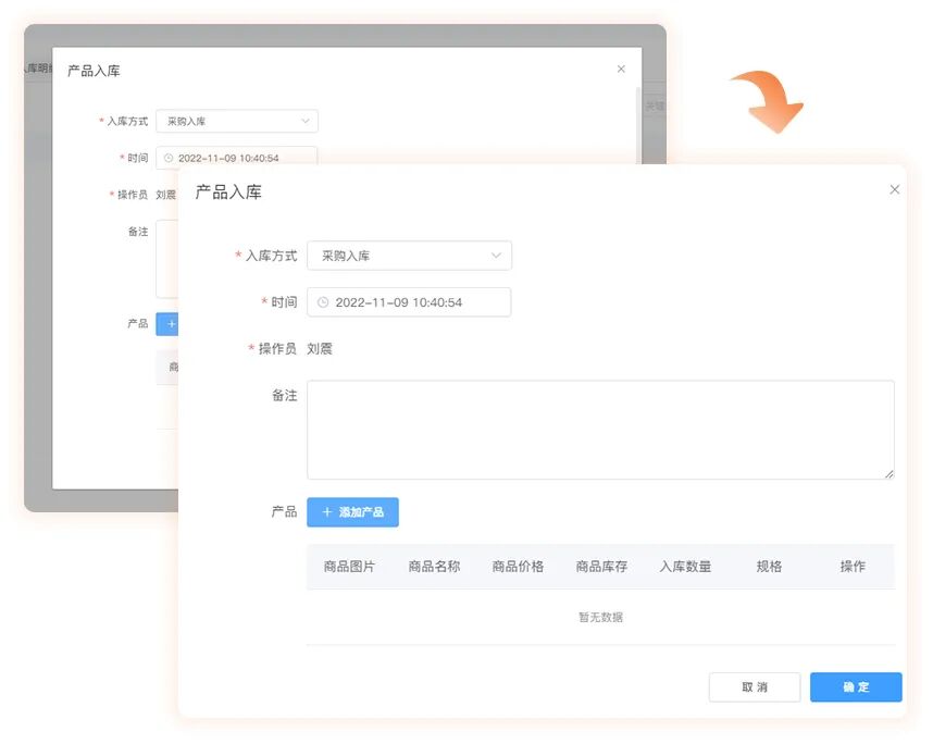 ◆ 商品创建后,商品管理功能对商品的库存只能查看,调整库存需要到库存管理进行出入库操作,建立出入库记录