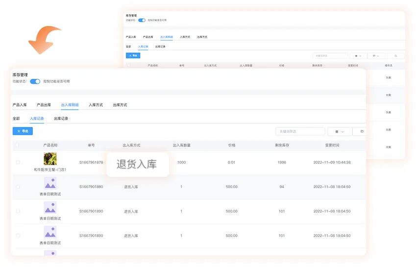 门店新增【库存管理】,可对门店商品库存进行统一的出入库管理,支持查看每种商品的出入库明细,帮助商家更好的针对自身的经营特点,制定和执行库存计划。让商家通过分析库存,更清楚了解物资的仓储、流向情况,库存资金占用等情况,提升商家的经营效率。