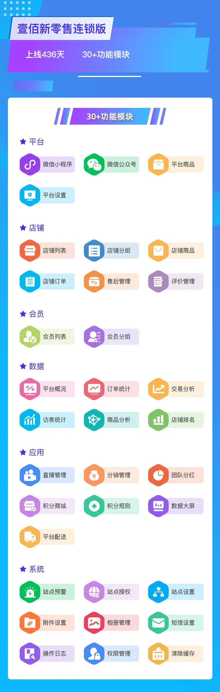 壹佰新零售连锁版产品历经2年研发,数十次迭代,在持续不断的优化中,我们赢得了广大客户的信任和认同,未来我们将会在听取客户建议基础上继续对产品进行优化和迭代,为广大用户提供更多更优质的功能,以及更加人性化的产品体验