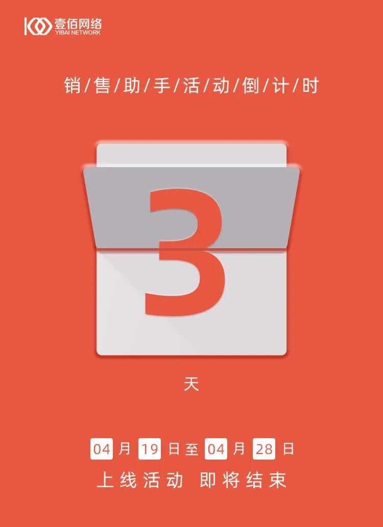 最后3天,壹佰销售助手上线活动倒计时!!!