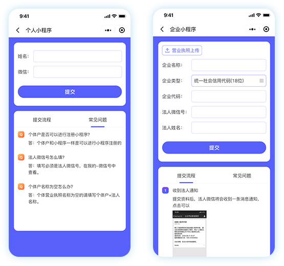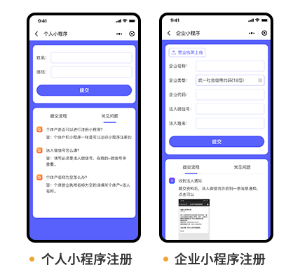 个人小程序注册和企业小程序注册需要提交信息分别如下: