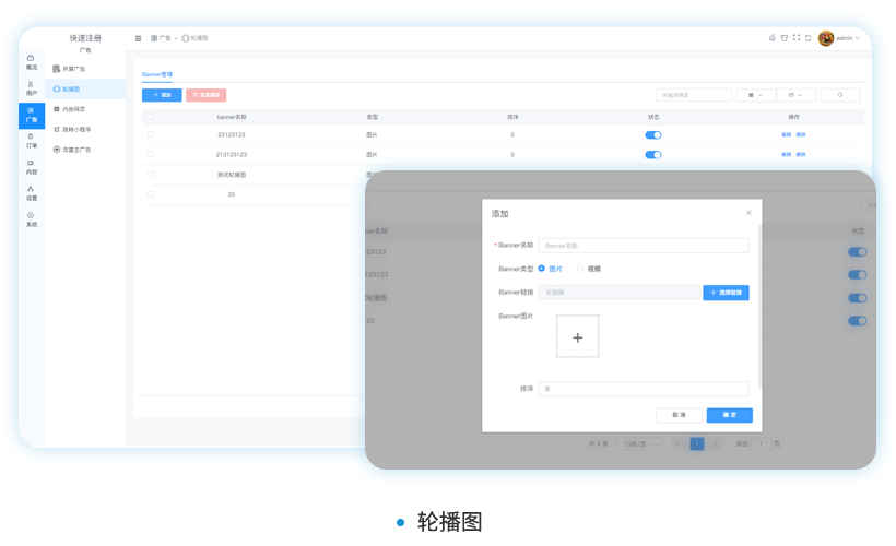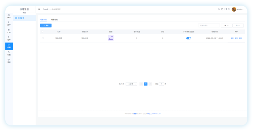 平台后台支持创建和管理相册,更多方便的设置广告图