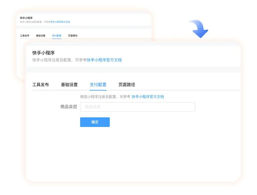 支付配置支持接入快手担保交易,保证了门店V3快手小程序能够在小程序内完成支付闭环。在快手开放平台--权限管理--支付开通,可以开通支付。开通过,用户可以再快手小程序门店中通过微信/支付宝进行支付。门店后台可输入门店行业类目