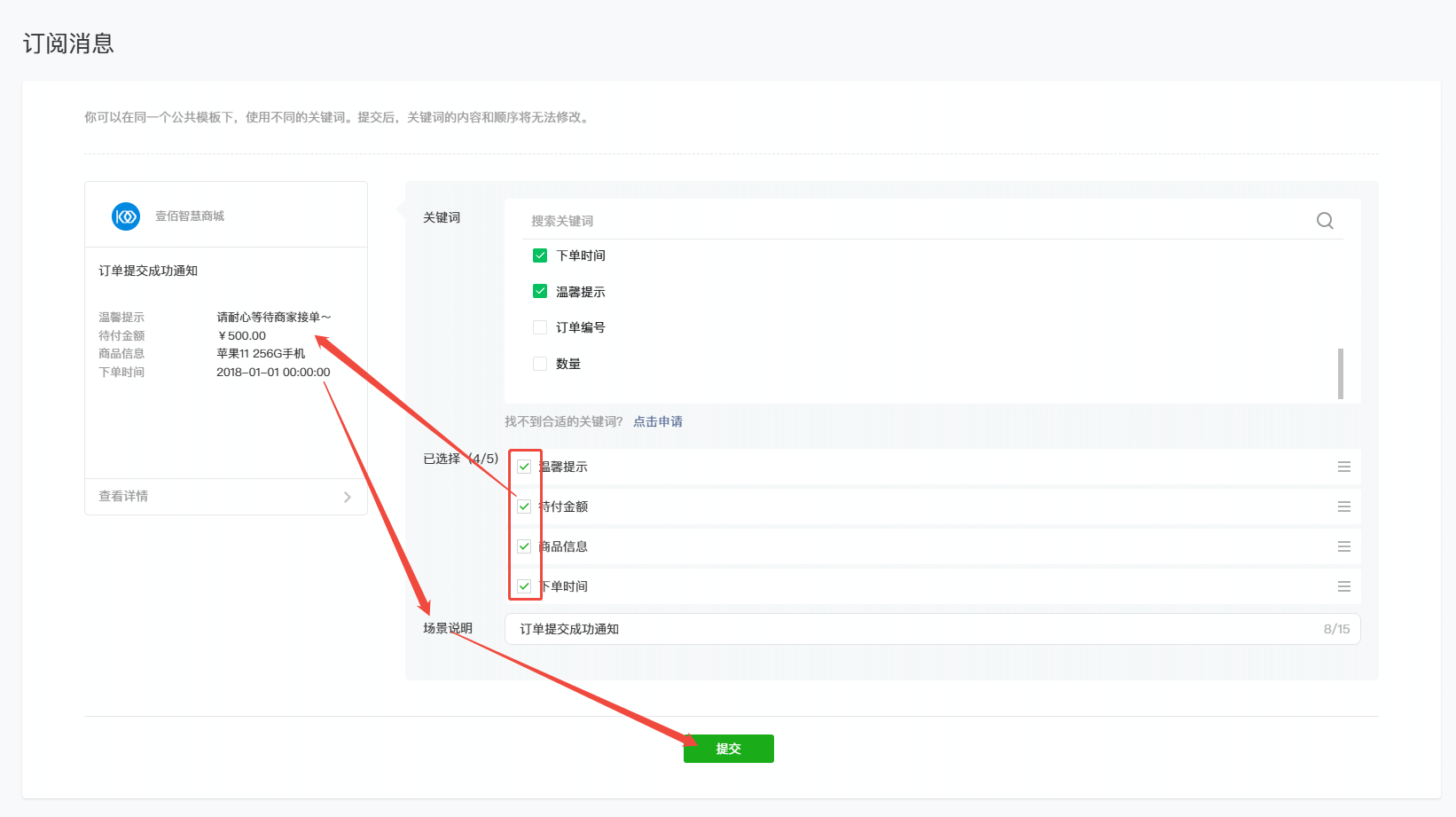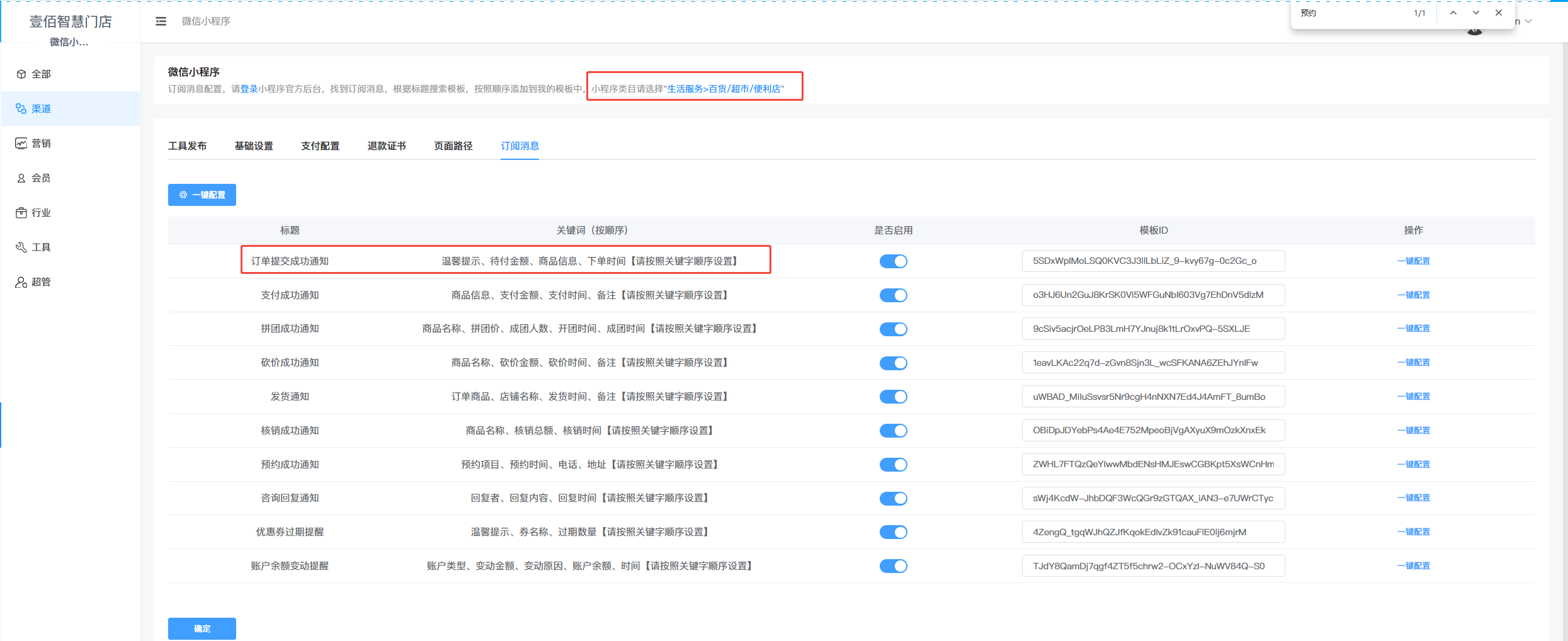 一、以门店V2后台的【订单提交成功通知】订阅消息为例