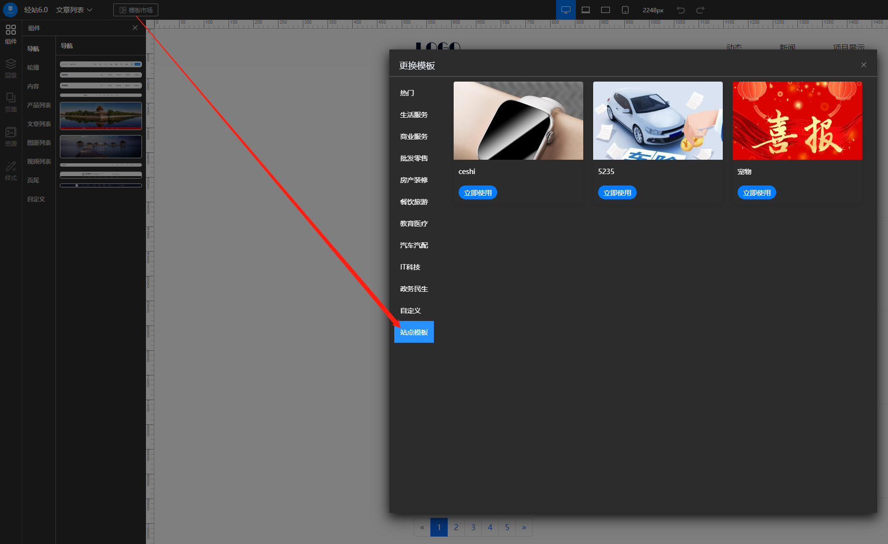 四、然后其他客户 进入站点设计页面,模板市场--站点模板可以看到并使用
