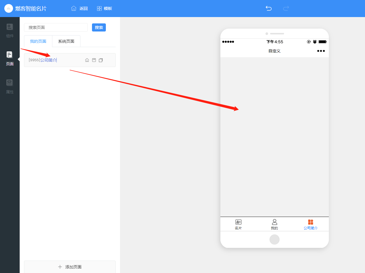 一、切换到【页面】选项卡,点击创建好的页面名称,进入页面编辑界面。