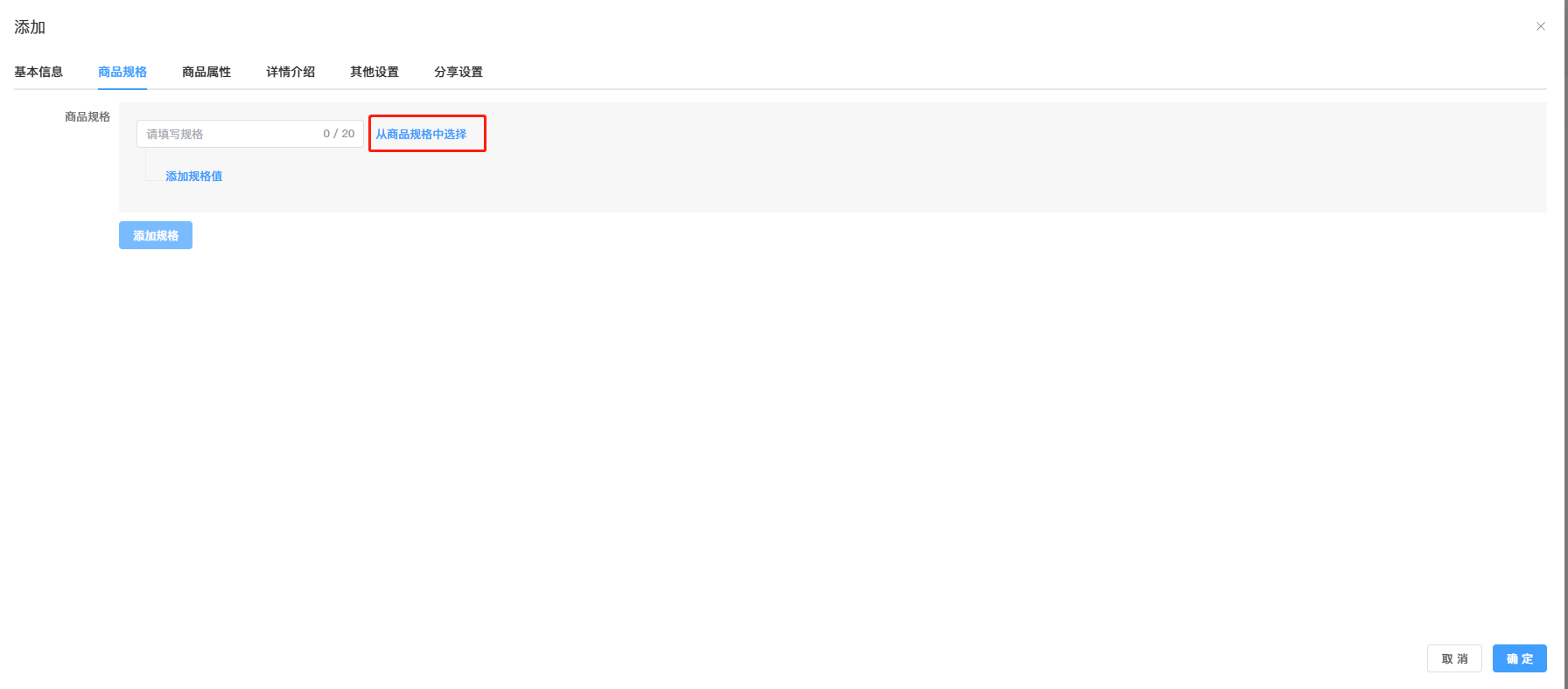 三、在商品列表,添加规格时候,可以直接调用商品规格中已经添加好的规格