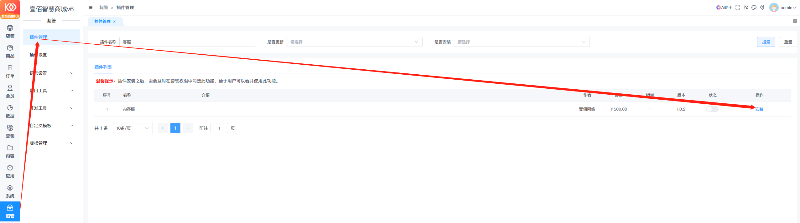 一、先安装Al客服插件 并将插件更新到最新