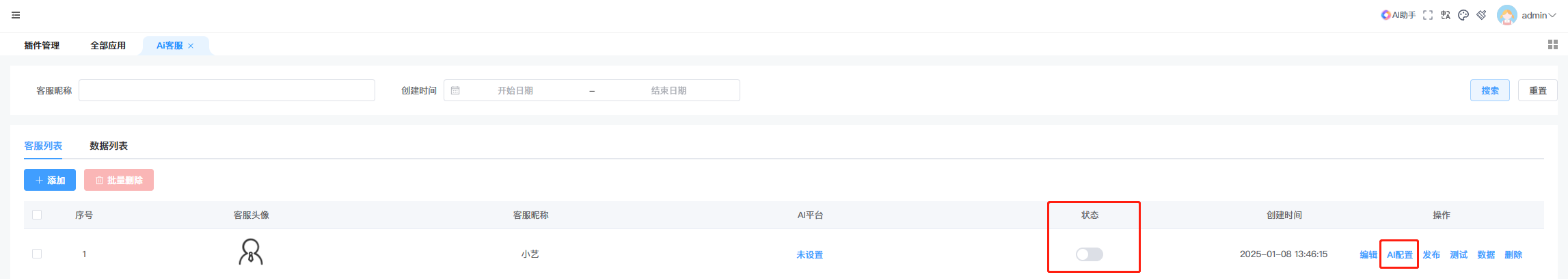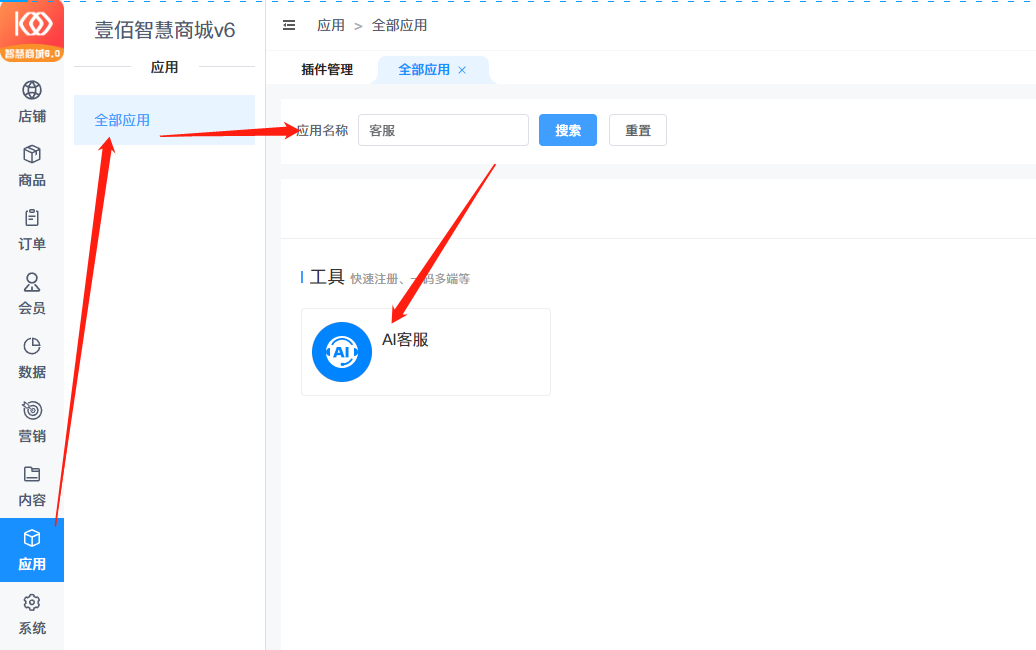 二、在应用菜单下,可以找到【Al客服插件】