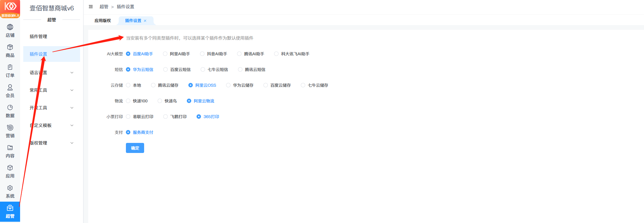 当安装有多个同类型插件时,可以选择某个插件作为默认使用插件