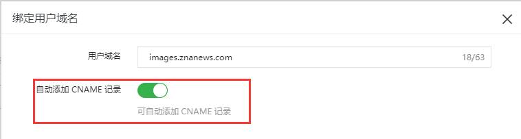 ##此账号拥有该域名的管理权限,故选择“自动添加CNAME记录”,如果域名不在当前账号下需要根据提示手动添加相关域名解析