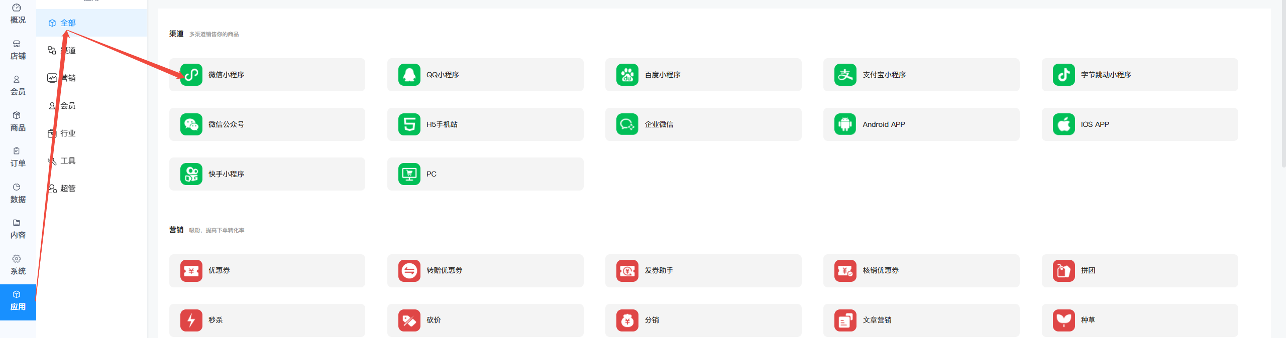 一、进入门店应用里面,可以参考这个手册:https://www.iyibai.com/tutorial/detail.php?id=2&content_id=2167&search=