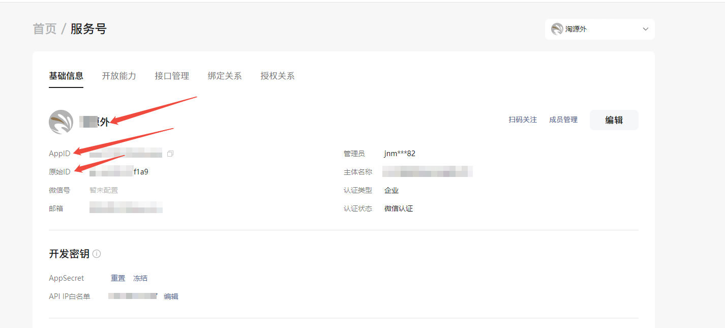 三、在服务号详情页--基础信息菜单下,可以直接看到 公众号名称、 公众号APPID和原始ID