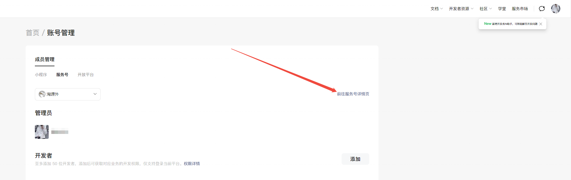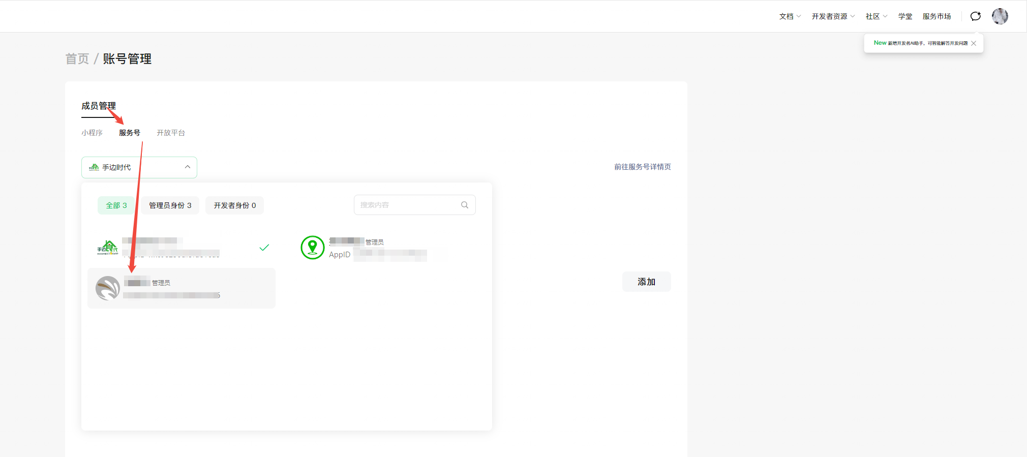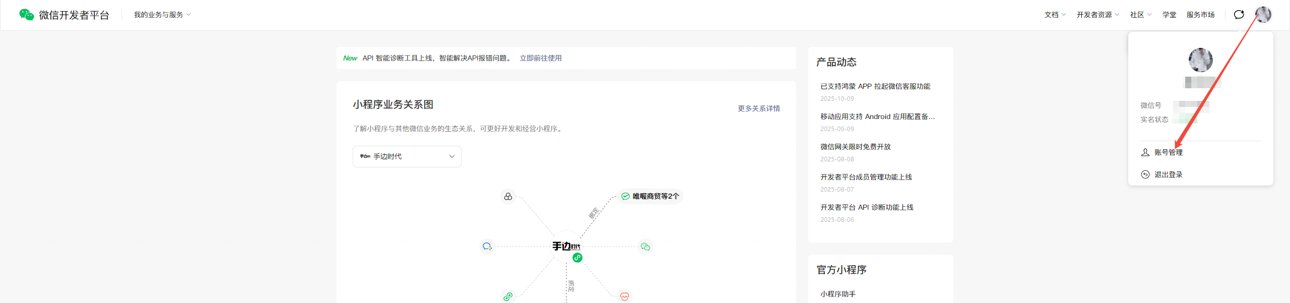一、扫码登录微信开发者平台 https://developers.weixin.qq.com/platform,账号管理
