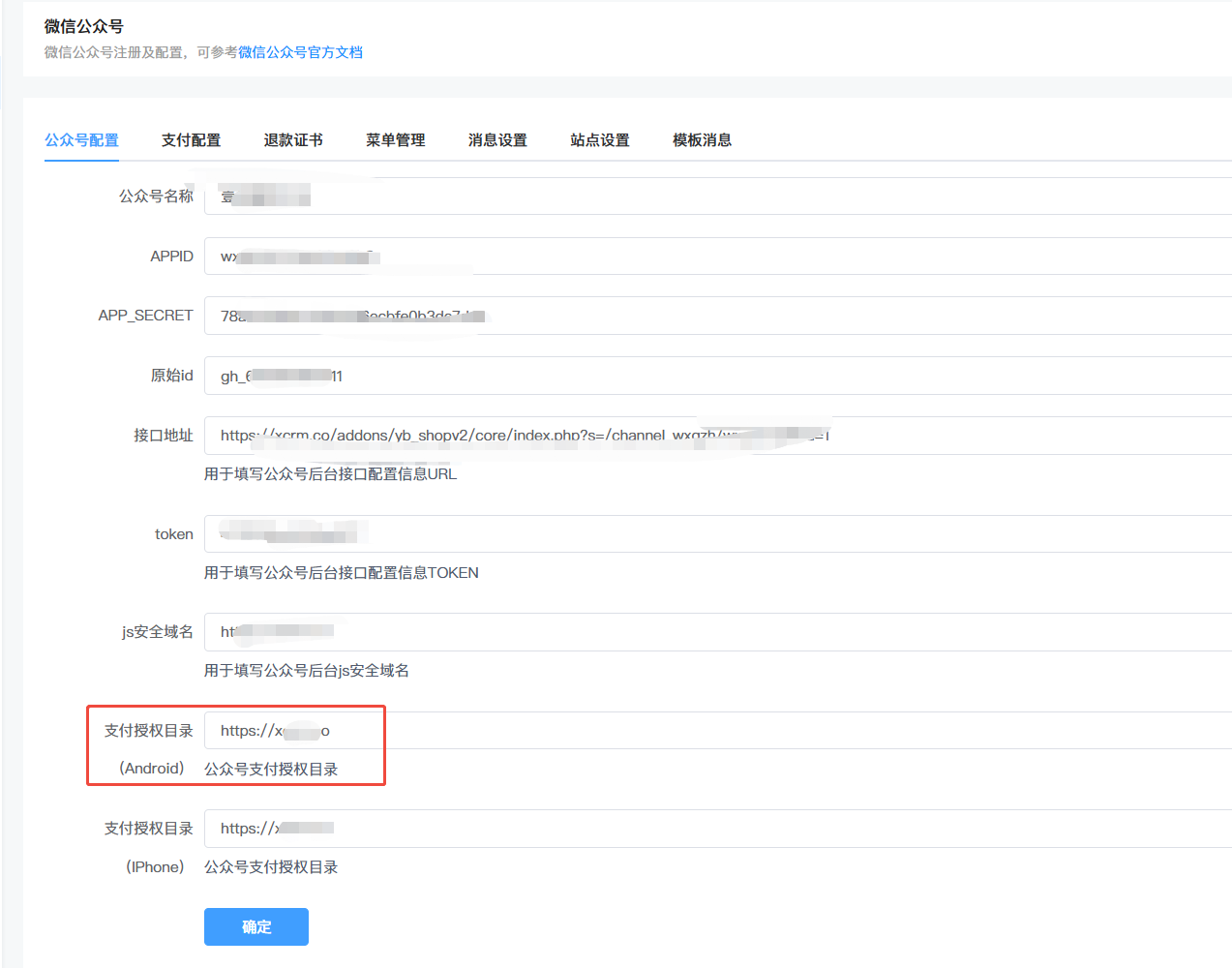 五、根据门店V2【公众号配置】页面上的授权支付目录,添加JSAPI支付的支付授权目录