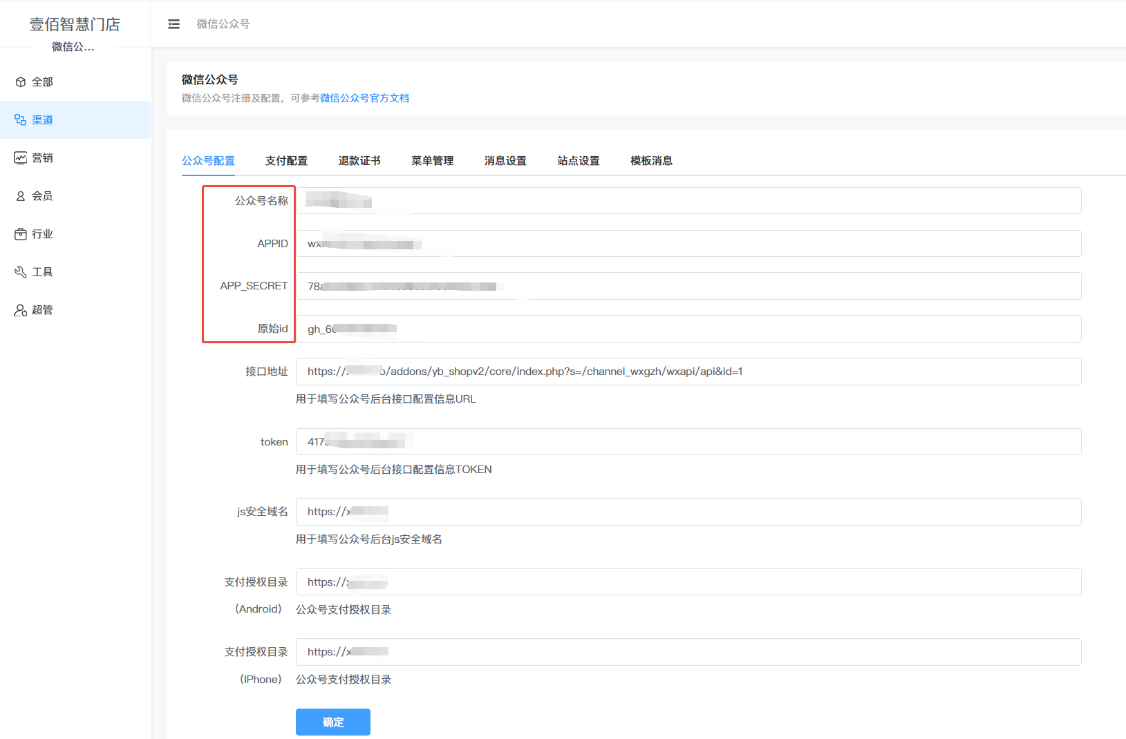 六、打开门店V2后台的【公众号配置】页面,确认公众号信息是否配置完成